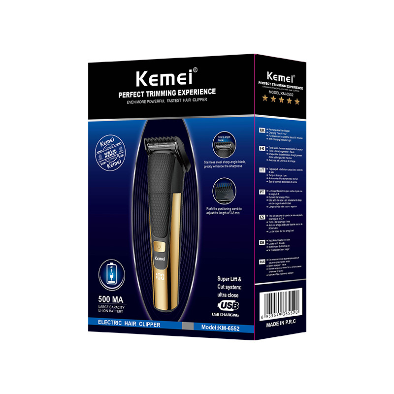 ماشین اصلاح موی سر و صورت کیمی مدل KM-6552، یک ابزار حرفهای و کارآمد است که به شما این امکان را میدهد تا به راحتی و دقت موهای خود را اصلاح کنید. با طراحی ارگونومیک و ابعاد مناسب (۱۷ × ۴ × ۳ سانتیمتر)، این دستگاه به راحتی در دست جای میگیرد و احساس راحتی در حین استفاده را برای شما فراهم میآورد. وزن سبک ۱۸۰ گرمی این ماشین اصلاح، کنترل و کارایی بیشتری را در حین اصلاح به شما میدهد. تیغه استیل ضد زنگ این دستگاه با قابلیت اصلاح از ۰.۵ تا ۱۲ میلیمتر، برشهای تمیز و دقیقی را ارائه میدهد و به شما کمک میکند تا به ظاهری آراسته و مرتب دست یابید. همچنین، با سرعت موتور ۶۰۰۰ دور در دقیقه و تعداد برشهای بین ۸۰۰۰ تا ۹۰۰۰ در دقیقه، این دستگاه قادر است به سرعت و با کارایی بالا موهای شما را اصلاح کند.